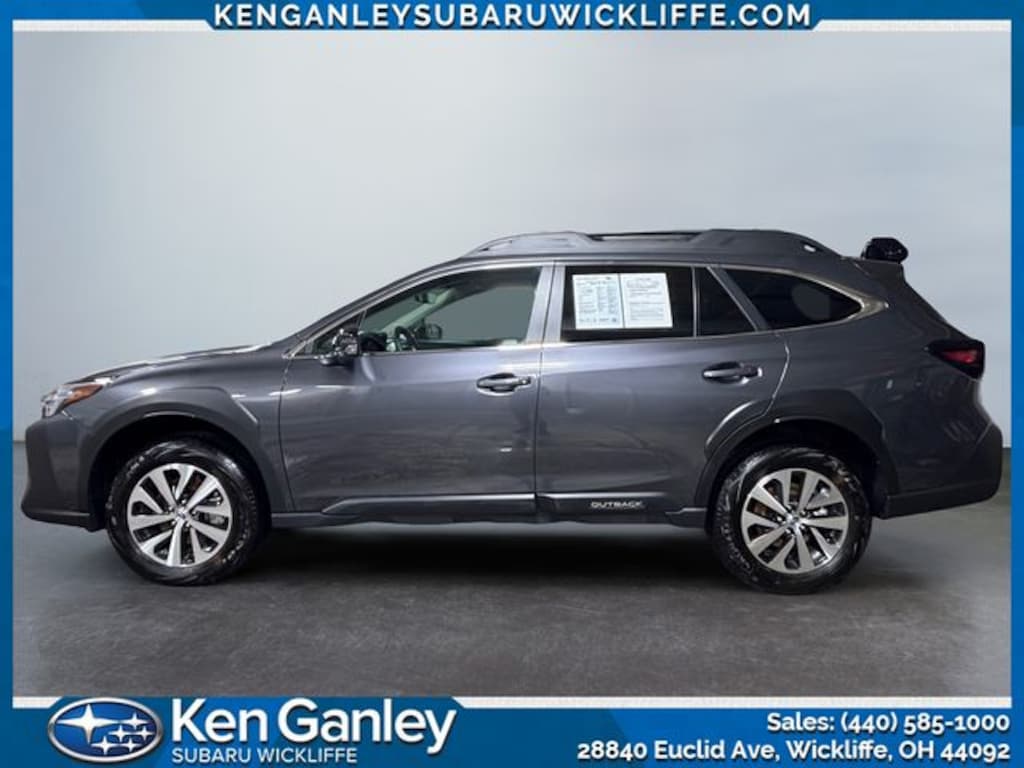 Subaru Outback Premium 2025 Magnetite Gray Metallic Certified. Newly Detailed, Subaru Certified Pre-Owned Certified, 4-Wheel Disc Brakes, 6 Speakers, ABS brakes, Air Conditioning, Alloy wheels, AM/FM radio: SiriusXM with 360L, Apple CarPlay & Android Auto, Auto High-beam Headlights, Auto-Dimming Mirror w/Compass & HomeLink, Automatic temperature control, Blind Spot Detection (BSD), Brake assist, BSD w/RCTA & Keyless Access & Push Button Start, Bumpers: body-color, Cloth Upholstery, Driver door bin, Driver vanity mirror, Dual front impact airbags, Dual front side impact airbags, Electronic Stability Control, Emergency communication system: MySubaru Safety (3-year free trial), Exterior Parking Camera Rear, Four wheel independent suspension, Front anti-roll bar, Front Bucket Seats, Front Center Armrest w/Storage, Front dual zone A/C, Front fog lights, Front reading lights, Fully automatic headlights, Hands-Free Power Rear Gate, Heated door mirrors, Heated Front Bucket Seats, Heated front seats, Illuminated entry, Keyless Access w/Push Button Start, Knee airbag, Leather Shift Knob, Leather steering wheel, Low tire pressure warning, Occupant sensing airbag, Outside temperature display, Overhead airbag, Overhead console, Panic alarm, Passenger door bin, Passenger vanity mirror, Power door mirrors, Power driver seat, Power steering, Power windows, Radio: Subaru 11.6" Multimedia Plus System, Rear anti-roll bar, Rear Cross Traffic Alert (RCTA), Rear seat center armrest, Rear window defroster, Rear window wiper, Remote keyless entry, Roof rack, Security system, Speed control, Speed-sensing steering, Split folding rear seat, Spoiler, Steering wheel mounted audio controls, Tachometer, Telescoping steering wheel, Tilt steering wheel, Traction control, Trip computer, Turn signal indicator mirrors, Variably intermittent wipers, Wheels: 17" x 7J Black Aluminum-Alloy. Clean CARFAX.