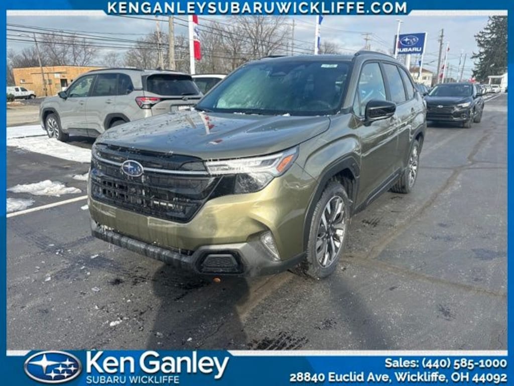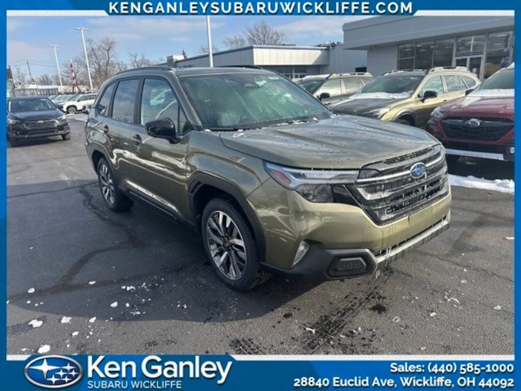 Subaru Forester Touring 2026 Autumn Green Metallic Newly Detailed, 11 Speakers, 4-Wheel Disc Brakes, ABS brakes, Air Conditioning, All-Weather Floor Liners, Alloy wheels, AM/FM radio: SiriusXM with 360L, Anti-whiplash front head restraints, Auto High-beam Headlights, Automatic temperature control, Brake assist, Bumpers: body-color, Cargo Tray, Driver door bin, Driver vanity mirror, Dual front impact airbags, Dual front side impact airbags, Electronic Stability Control, Emergency communication system: MySubaru Companion (5-years free), Exterior Parking Camera Rear, Four wheel independent suspension, Front anti-roll bar, Front Bucket Seats, Front Center Armrest, Front dual zone A/C, Front fog lights, Front reading lights, Fully automatic headlights, harman/kardon® Speakers, Heads-Up Display, Heated and Ventilated Front Bucket Seats, Heated door mirrors, Heated front seats, Heated rear seats, Heated steering wheel, HVAC memory, Illuminated entry, Knee airbag, Leather Shift Knob, Leather steering wheel, LED Upgrade, Low tire pressure warning, Memory seat, Navigation System, Occupant sensing airbag, Outside temperature display, Overhead airbag, Overhead console, Panic alarm, Passenger door bin, Passenger vanity mirror, Perforated Leather-Trimmed Upholstery, Power door mirrors, Power driver seat, Power Liftgate, Power moonroof: Panoramic, Power passenger seat, Power steering, Power windows, Radio data system, Radio: Subaru 11.6" Multimedia Navigation System, Rain sensing wipers, Rear anti-roll bar, Rear Bumper Cover, Rear seat center armrest, Rear window defroster, Rear window wiper, Remote keyless entry, Security system, Speed control, Speed-sensing steering, Split folding rear seat, Spoiler, Standard Model, Steering wheel mounted audio controls, Tachometer, Telescoping steering wheel, Tilt steering wheel, Traction control, Trip computer, Turn signal indicator mirrors, Variably intermittent wipers, Ventilated front seats, Wheels: 19" x 7.5 J Dark Gray Aluminum-Alloy. Clean CARFAX.