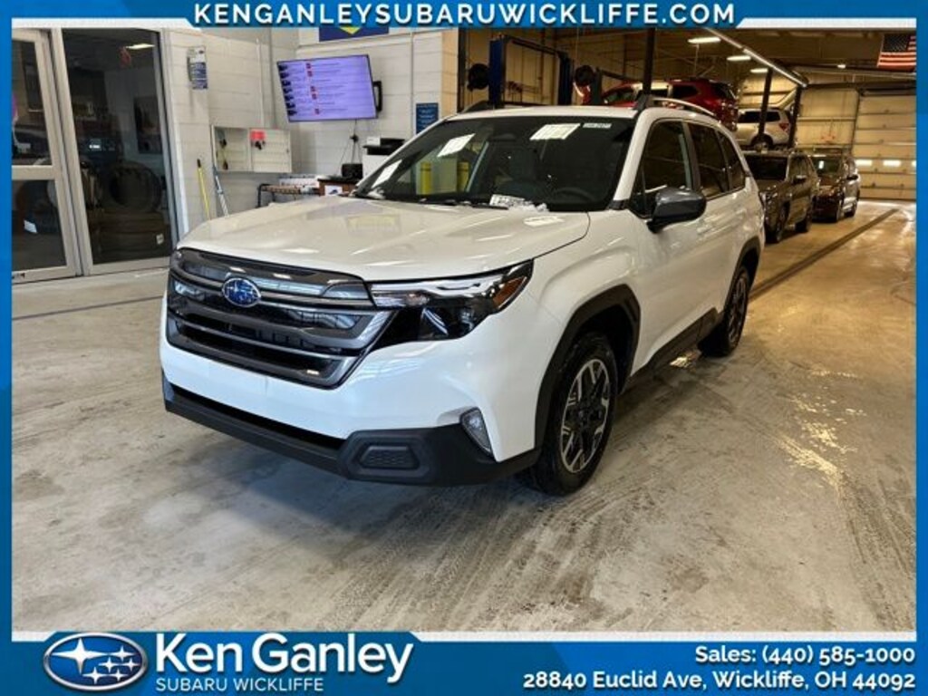 Subaru Forester Premium 2026 Crystal White Pearl Newly Detailed, 4-Wheel Disc Brakes, 6 Speakers, ABS brakes, Air Conditioning, All-Weather Floor Liners, Alloy wheels, AM/FM radio: SiriusXM with 360L, Anti-whiplash front head restraints, Auto High-beam Headlights, Auto-Dimming Mirror with Compass and HomeLink, Automatic Emergency Steering, Automatic temperature control, Blind-Spot Detection (BSD)/RCTA System, Brake assist, Bumpers: body-color, Cargo Tray, Driver door bin, Driver vanity mirror, Dual front impact airbags, Dual front side impact airbags, Electronic Stability Control, Emergency communication system: MySubaru Companion (5-years free), Emergency Lane Keep Assist, Exterior Parking Camera Rear, Four wheel independent suspension, Front anti-roll bar, Front Bucket Seats, Front Center Armrest, Front dual zone A/C, Front fog lights, Front reading lights, Fully automatic headlights, Heated door mirrors, Heated Front Bucket Seats, Heated front seats, Illuminated entry, Knee airbag, Leather steering wheel, Low tire pressure warning, Occupant sensing airbag, Outside temperature display, Overhead airbag, Overhead console, Panic alarm, Passenger door bin, Passenger vanity mirror, Power door mirrors, Power driver seat, Power moonroof: Panoramic, Power Rear Gate, Power Rear Gate and Blind Spot Detection with Rear Cross Traffic Alert, Power steering, Power windows, Premium Textured Cloth Upholstery, Radio data system, Radio: Subaru 11.6" Multimedia Plus System, Rear anti-roll bar, Rear Bumper Cover, Rear seat center armrest, Rear Seatback Protector, Rear window defroster, Rear window wiper, Remote keyless entry, Security system, Speed control, Speed-sensing steering, Split folding rear seat, Spoiler, Steering wheel mounted audio controls, Tachometer, Telescoping steering wheel, Tilt steering wheel, Traction control, Trip computer, Variably intermittent wipers, Wheels: 17" x 7.0 J Dark Metallic Aluminum-Alloy.