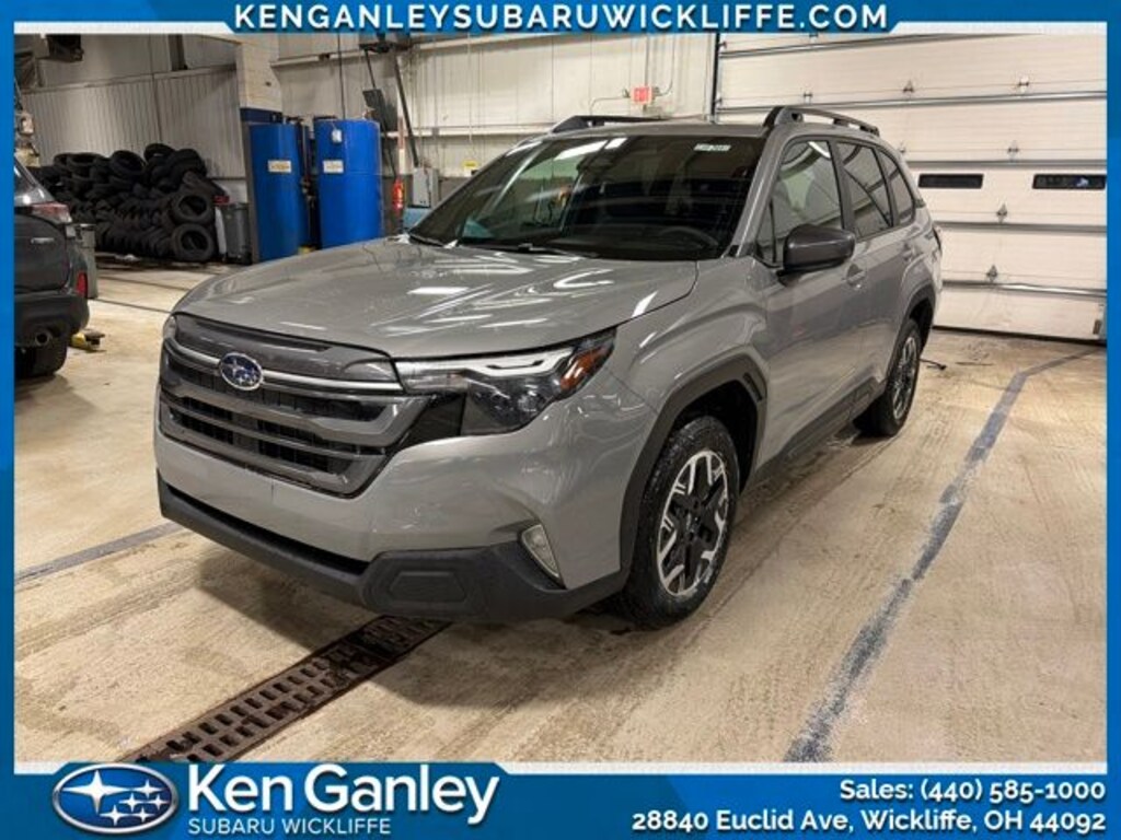 Subaru Forester Premium 2026 River Rock Pearl Newly Detailed, 4-Wheel Disc Brakes, 6 Speakers, ABS brakes, Air Conditioning, All-Weather Floor Liners, Alloy wheels, AM/FM radio: SiriusXM with 360L, Anti-whiplash front head restraints, Auto High-beam Headlights, Auto-Dimming Mirror with Compass and HomeLink, Automatic Emergency Steering, Automatic temperature control, Blind-Spot Detection (BSD)/RCTA System, Brake assist, Bumpers: body-color, Cargo Tray, Driver door bin, Driver vanity mirror, Dual front impact airbags, Dual front side impact airbags, Electronic Stability Control, Emergency communication system: MySubaru Companion (5-years free), Emergency Lane Keep Assist, Exterior Parking Camera Rear, Four wheel independent suspension, Front anti-roll bar, Front Bucket Seats, Front Center Armrest, Front dual zone A/C, Front fog lights, Front reading lights, Fully automatic headlights, Heated door mirrors, Heated Front Bucket Seats, Heated front seats, Illuminated entry, Knee airbag, Leather steering wheel, Low tire pressure warning, Occupant sensing airbag, Outside temperature display, Overhead airbag, Overhead console, Panic alarm, Passenger door bin, Passenger vanity mirror, Power door mirrors, Power driver seat, Power moonroof: Panoramic, Power Rear Gate, Power Rear Gate and Blind Spot Detection with Rear Cross Traffic Alert, Power steering, Power windows, Premium Textured Cloth Upholstery, Radio data system, Radio: Subaru 11.6" Multimedia Plus System, Rear anti-roll bar, Rear Bumper Cover, Rear seat center armrest, Rear Seatback Protector, Rear window defroster, Rear window wiper, Remote keyless entry, Security system, Speed control, Speed-sensing steering, Split folding rear seat, Spoiler, Steering wheel mounted audio controls, Tachometer, Telescoping steering wheel, Tilt steering wheel, Traction control, Trip computer, Variably intermittent wipers, Wheels: 17" x 7.0 J Dark Metallic Aluminum-Alloy.